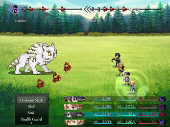 - Turn-based combat with animated enemies and lively action sequences! The battle screen is never still, from party members using unique skills to enemies crushing said party members with AI designed to create a dynamic challenge.